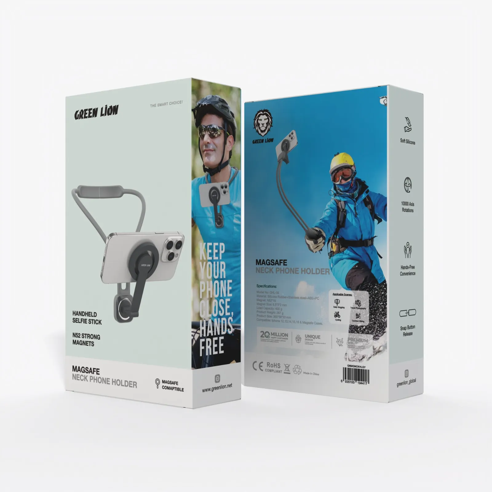نگهدارنده مگ سیف گردنی گرین لاین Magsafe Neck Phone به رنگ خاکی یک اکسسوری انعطافپذیر و کاربردی است که برای استفاده بدون دست از گوشی طراحی شده است. این محصول از ترکیب مقاوم سیلیکون، فولاد ضد زنگ، ABS و PC ساخته شده و همزمان انعطافپذیری و استحکام را فراهم میآورد. با مگنتهای N52، گوشی شما بهطور محکم در جای خود قرار میگیرد و با مدلهای آیفون 12، 13، 14، 15 و 16 و همچنین قابهای مگسیف سازگار است. این نگهدارنده قادر به حمل بار تا 400 گرم است و 10000 چرخش محور را پشتیبانی میکند که انعطافپذیری در استفاده از آن را تضمین میکند. این دستگاه به شما کمک میکند تا سلفی بگیرید بدون اینکه دچار دردسر شوید و میتواند به راحتی به یک میله دستی تبدیل شود که به وسیله دکمه آزادسازی سریع، در چند ثانیه قابل باز شدن است. این نگهدارنده از سیلیکون نرم ساخته شده و حداکثر راحتی را برای استفاده روزمره بدون دست فراهم میکند.